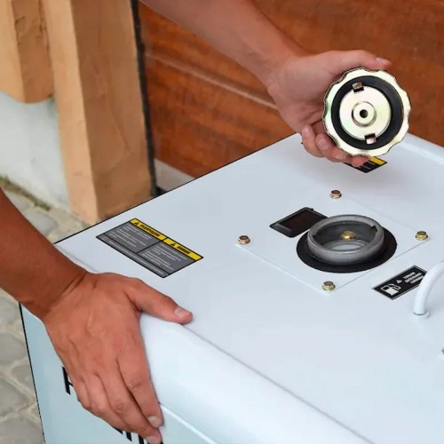 Топливного бака объемом 15 л хватает примерно на 8,5 ч работы при нагрузке 75%. Для контроля за основными рабочими показателями: напряжением, частотой тока, отработанными моточасами, предусмотрен цифровой экран.