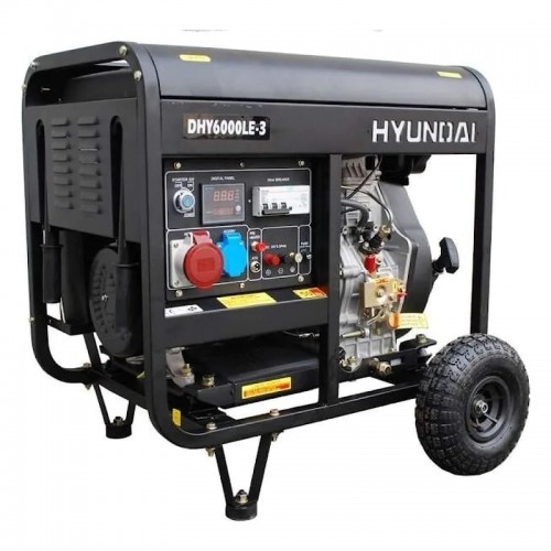 Дизельный генератор Hyundai DHY 6000LE-3 востребован в гараже, на строительной площадке или в ремонтной мастерской в качестве основного или резервного источника однофазного и трехфазного тока.
