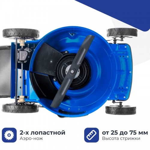 Ножи специальной аэродинамической формы при вращении создают воздушный поток, приподнимающий стебли. Это позволяет скашивать все растения на одинаковой высоте и обеспечивает аккуратный и ухоженный вид газона.