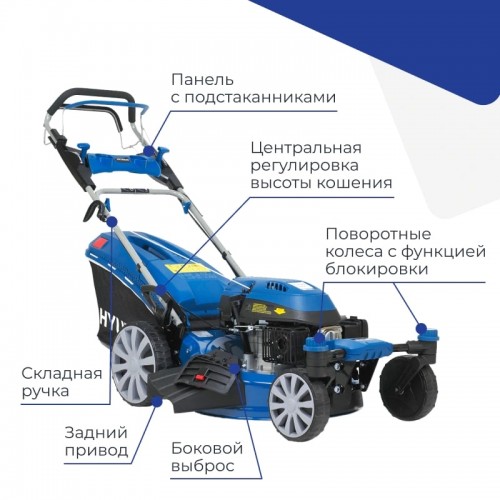 Газонокосилка Hyundai L 5110RS оснащена надежным двигателем Hyundai IVC 200 объемом 196 см³ и выдерживает большие нагрузки. Машина имеет привод на задние колеса, благодаря чему ее достаточно только направлять в нужную сторону. Регулировка высоты скашивания осуществляется одним центральным рычагом сразу на все колеса и не занимает много времени.