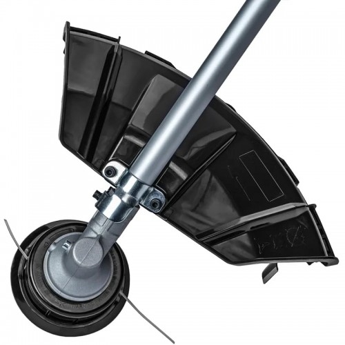 - Полуавтоматическая катушка обеспечивает удобство регулировки длины лески. Достаточно однократно ударить триммерной головкой о землю при включенном двигателе, и шнур выдвинется на несколько миллиметров. Излишки срезаются о лезвие на кожухе.