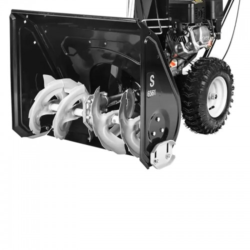 Зимний двигатель с ручным стартером без проблем заводится в мороз до -30°С. Праймер для предварительной подкачки топлива и система подогрева карбюратора облегчают запуск. Если поблизости есть электрическая розетка с напряжением 220 В, вы быстро заведете снегоуборщик Hyundai S 6561 нажатием кнопки электрозапуска.