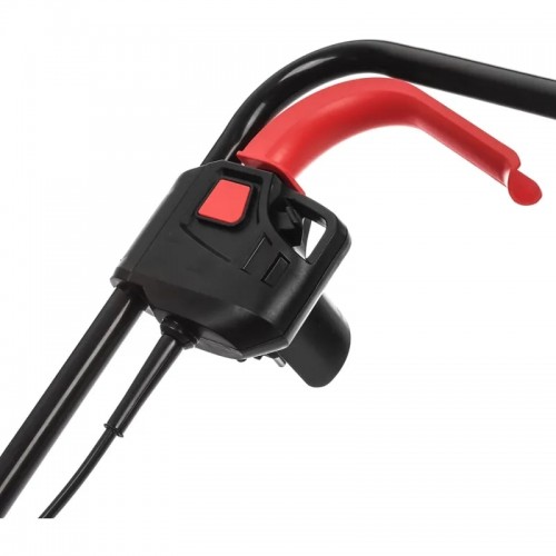 Управлять газонокосилкой очень просто: она включается с помощью кнопки и рычага. Для защиты от случайного запуска есть специальный предохранитель. Для непредвиденных случаев предусмотрена функция экстренной остановки.