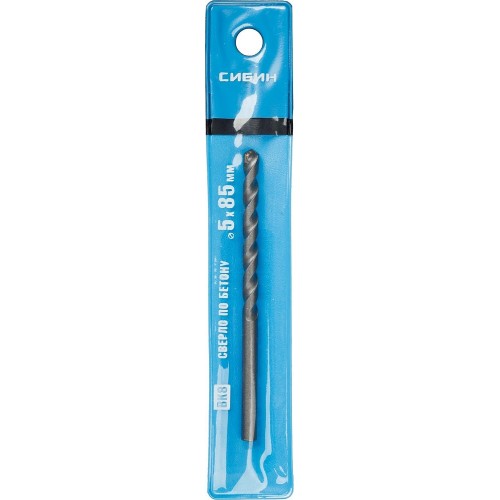 Сверло по бетону СИБИН 29112-085-05, предназначено для работ по бетону, граниту, природному и искусственному камню, кирпичной кладке. Длина - 85 мм. Усиленный стальной стержень защищает от деформации. Особая u-образная спираль ускоряет отвод продуктов сверления, снижая нагрев сверла.