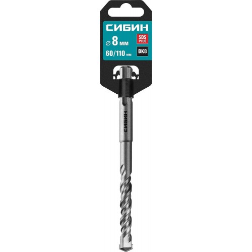 Бур SDS-plus СИБИН 29312-110-08, предназначен для сверления отверстий в бетоне, граните, кирпичной кладке, камне и твердом известняке. Твердосплавная пластина ВК8. Спираль S4 с усиленным сердечником.