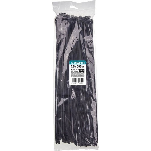 СИБИН 500х7.6 мм, 100 шт, хомуты нейлоновые черные 3788-76-500