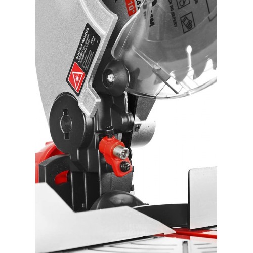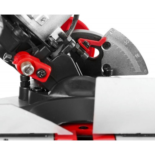 • - Фиксирующийся в любом положении поворотный стол и удобная регулировка наклона облегчают установку угла пиления,