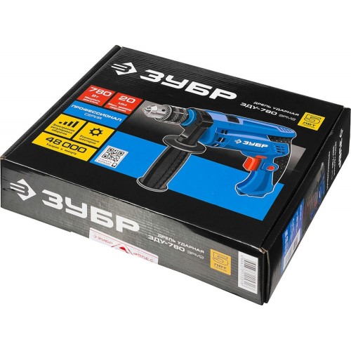 Дрель ударная электрическая ЗУБР ЗДУ-780 ЭРМ2, предназначена для сверления отверстий в различных материалах (дерево, сталь и т. д.). Производительная дрель с качественным кулачковым патроном, плавной регулировкой оборотов и надежной конструкцией на подшипниках - лучший подарок мастеру. Функция сверления с ударом, широкий диапазон регулировки частоты вращения, удобная дополнительная рукоятка - все, что нужно для качественной работы. Надежный инструмент для эффективной, качественной работы. Производительная дрель для различных работ (сверление, заворачивание, перемешивание). Функция сверления с ударом позволяет выполнять отверстия в кирпиче и легком бетоне. Электронная регулировка оборотов в широком диапазоне расширяет возможности использования изделия. Изменение частоты вращения степенью нажатия на выключатель обеспечивает как плавное начало сверления во избежание увода сверла, так и быстрое сверление. Надежная конструкция на шариковых подшипниках для минимального биения шпинделя.