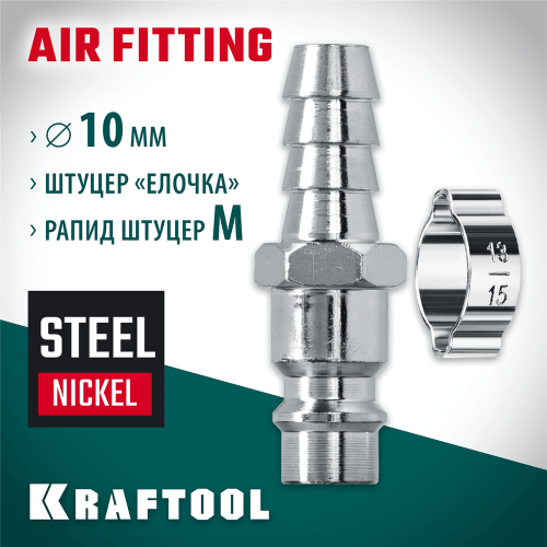 Переходник KRAFTOOL 06597-10 предназначен для пневмоинструмента, штуцер "елочка" - рапид штуцер (папа). Высокая точность изготовления обеспечивает надежноть и герметичность. Применяется для формирования разнообразных пневмостистем.