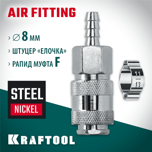 KRAFTOOL штуцер "елочка", 8 мм - рапид муфта, с хомутом, Переходник (06596-08)