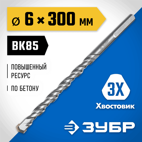 ЗУБР ПРОФЕССИОНАЛ 6 x 300 мм сверло по бетону усиленное, 3-х гранный хвостовик (2916-300-06_z01)