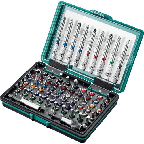 Набор бит CLR многофункциональных KRAFTOOL 26067-H71, предназначен для слесарных, монтажных и ремонтных работ. Цветовая маркировка бит позволяет пользоваться набором максимально быстро и комфортно. Высококачественная легированная хромомолибденовая сталь гарантирует высокую механическую прочность. Точная геометрия шлицов обеспечивает прочную посадку в крепеже. Адаптер с магнитным держателем способствует быстрой и надежной фиксации насадки. Эргономичный пластиковый кейс для удобного хранения и переноски. Специальное гальваническое покрытие защищает от коррозии при работе в агрессивных средах.