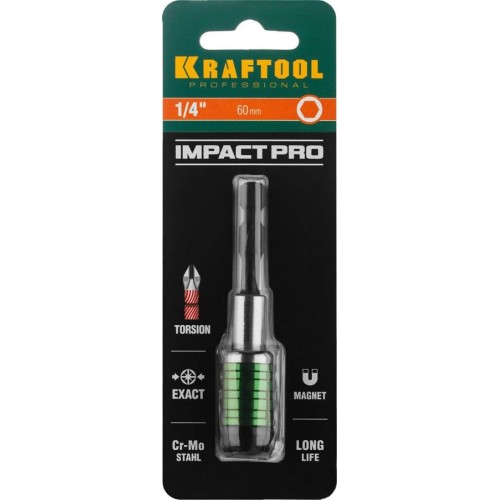 Профессиональный адаптер KRAFTOOL Impact Pro для ударных шуруповертов. Разработан в соответствии с высокими требованиями, обеспечивают высокую надежность. Эластичный стержень предохраняет наконечник от разрушения при пиковых нагрузках.