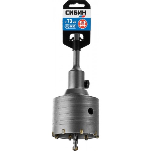 Буровая коронка СИБИН 29216-73, предназначена для сверления легкого бетона и кирпича. Твердосплавные зубья из сплава ВК8С позволяют эффективно дробить обрабатываемый материал. Специальная спиралевидная форма корпуса коронки из высокопрочной стали уменьшает трение о стенки отверстия, ускоряет отвод шлама и повышает срок службы инструмента. Коронка по бетону с полной оснасткой. Державка SDS-plus из легированной стали. Резьбовая посадка М22 обеспечивает надежное крепление коронки с державкой. Фиксация центрирующего сверла винтом. Износостойкое покрытие защищает от коррозии.