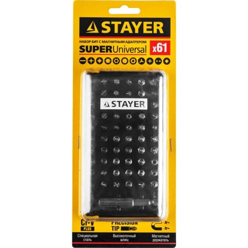 Набор бит STAYER 26084-H61, применяется при монтаже и демонтаже резьбовых соединений. Высококачественная легированная хромомолибденовая сталь обеспечивает высокую механическую прочность. Точная геометрия шлицов обеспечивает точную посадку в крепеже. Адаптер с магнитным держателем обеспечивает быструю и надежную фиксацию насадки. Эргономичный пластиковый кейс для удобного хранения и переноски.