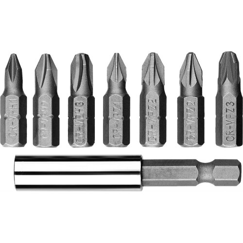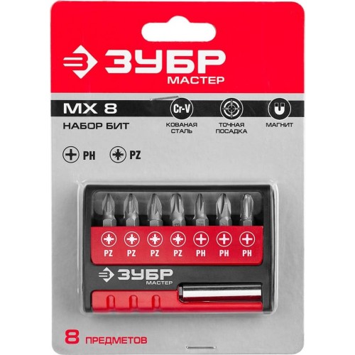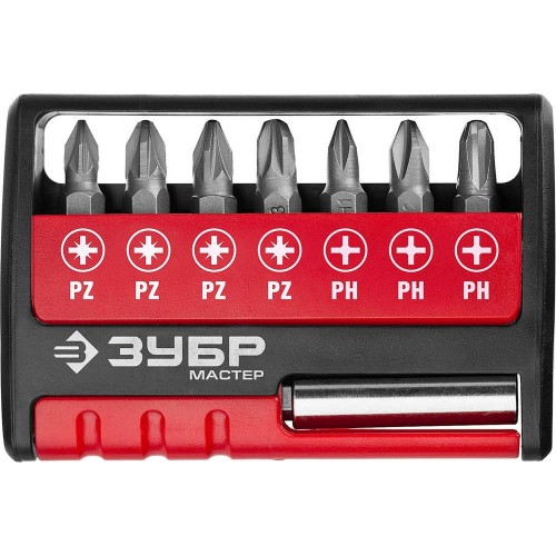 Набор бит ЗУБР 26089-H8, предназначен для слесарных, монтажных и ремонтных работ. Геометрия шлицов обеспечивает точную посадку в крепеже. Высококачественная легированная хромованадиевая сталь обеспечивает высокую механическую прочность. Точная геометрия шлицов обеспечивает точную посадку в крепеже. Адаптер с магнитным держателем обеспечивает быструю и надежную фиксацию насадки. Эргономичный пластиковый кейс для удобного хранения и переноски.