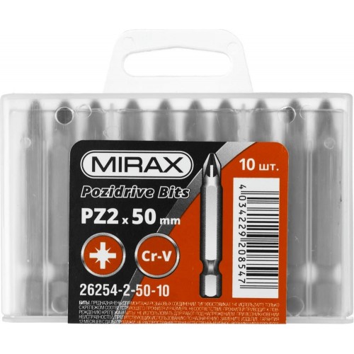 MIRAX PZ2, 50 мм, 10 шт., Cr-V cталь, набор бит 26254-2-50-10