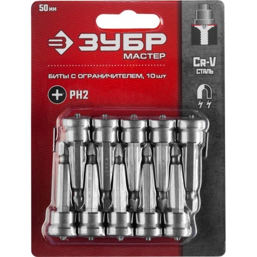 Профессиональные биты со встроенным держателем-ограничителем крепежа ЗУБР 26002-2-50-10, предназначены для монтажа и демонтажа резьбовых соединений. Точная посадка предотвращает выскальзывание шлица из крепежа.