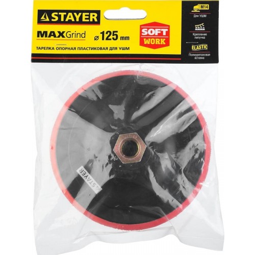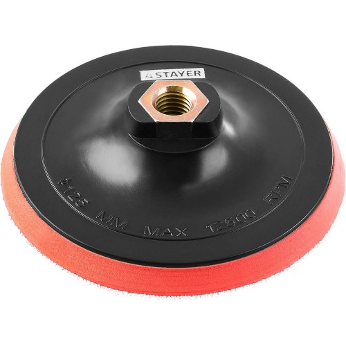 Тарелка опорная STAYER 35744-125, применяется для крепления оснастки на УШМ при проведении полировально-шлифовальных работ. Крепление на липучку. Полиуретановая вставка обеспечивает эффективную обработку поверхности со сложным рельефом. Максимально допустимая частота оборотов – 12500 об/мин.
