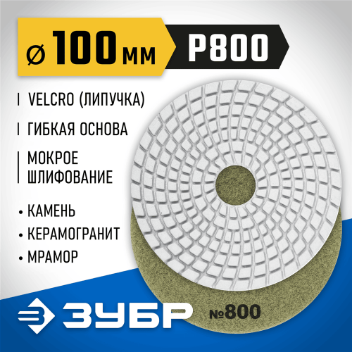 ЗУБР 100 мм, №800, алмазный гибкий шлифовальный круг (Черепашка) для мокрого шлифования 29866-800