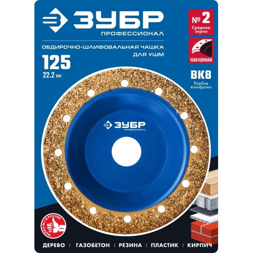 Наклонная обдирочно-шлифовальная чашка №2 ЗУБР 33435-2, предназначена для грубой шлифовки. Применяется для шлифовальных машин. Повышенные эксплуатационные характеристики твердосплавного зерна ВК8 в сравнении с классическими абразивами. Колоссальная экономия средств и времени ввиду своей эффективности и долговечности. Легко справляется с сучками древесины и любыми неметаллическими материалами. Легко чистится щеткой и не подвержен засаливанию. Удобство и универсальность применения.