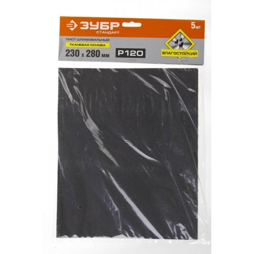 ЗУБР 230 х 280 мм, Р120, 5 шт., на тканевой основе, водостойкий, лист шлифовальный 35415-120 Стандарт