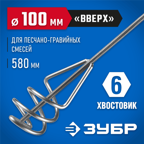 Насадка для строительного миксера ЗУБР 06033-10-60_z02, предназначена для равномерного распределения смешиваемых материалов. Спиралевидная структура рабочей части обеспечивает эффективное перемешивание с направлением потока смеси вверх. Используемая сталь с уникальным покрытием защитит насадку для миксера от внешних воздействий.
