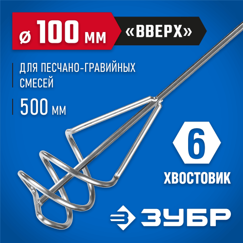 ЗУБР 100х500 мм, шестигранный хвостовик, миксер для песчано-гравийных смесей 06033-10-50_z02 Профессионал