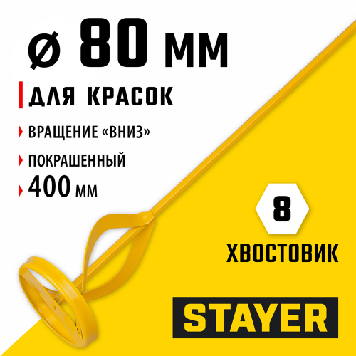 STAYER 80 х 400 мм, шестигранный хвостовик, металлический миксер для красок (06019-08-40)