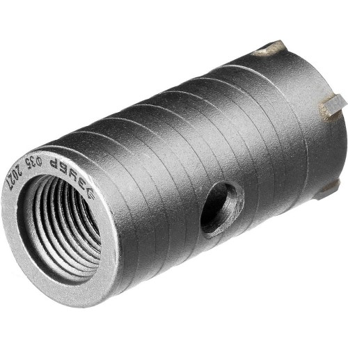 Буровая коронка ЗУБР 29180-35, предназначена для сверления отверстий в бетоне, кирпиче, природном и искусственном камне, а также плотных известняках. Используется с дрелями и перфораторами мощностью не менее 850 Вт в режиме ударного сверления. Твердосплавные зубья из сплава ВК85 позволяют эффективно дробить обрабатываемый материал. Специальная спиралевидная форма корпуса коронки из высокопрочной стали уменьшает трение о стенки отверстия, ускоряет отвод продуктов сверления и повышает срок службы инструмента. Резьбовая посадка М22 обеспечивает надежное крепление коронки с державкой. Износостойкое покрытие защищает от коррозии.