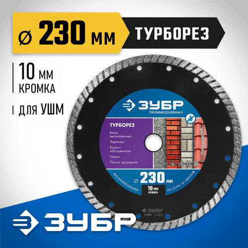 ЗУБР Ø 230х22.2 мм, алмазный, сегментный, диск отрезной для УШМ ТУРБОРЕЗ 36652-230_z02 Профессионал