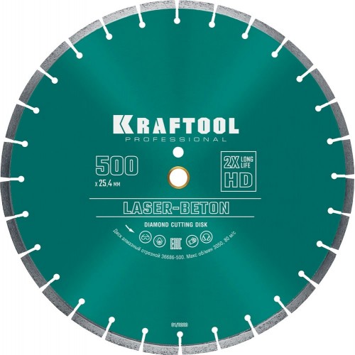 Алмазный диск отрезной KRAFTOOL 36686-500, применяется для резки бетона и камня. Технология LWB (Laser Welded Blades) гарантирует надежную работу инструмента даже при высоких нагрузках и без применения охлаждения. Луч лазера проваривает стык между алмазным сегментом и стальным закаленным корпусом, образуя прочный монолитный шов. Оптимально подобранные компоненты металлической связки с высотой сегмента в 10 мм гарантируют продолжительный рабочий ресурс диска. Корпуса алмазных дисков изготовлены из прочной легированной стали, способной выдержать значительную механическую нагрузку и высокую температуру.