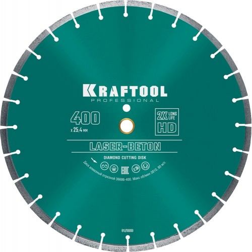 Алмазный диск отрезной KRAFTOOL 36686-400, применяется для резки бетона и камня. Технология LWB (Laser Welded Blades) гарантирует надежную работу инструмента даже при высоких нагрузках и без применения охлаждения. Луч лазера проваривает стык между алмазным сегментом и стальным закаленным корпусом, образуя прочный монолитный шов. Оптимально подобранные компоненты металлической связки с высотой сегмента в 10 мм гарантируют продолжительный рабочий ресурс диска. Корпуса алмазных дисков изготовлены из прочной легированной стали, способной выдержать значительную механическую нагрузку и высокую температуру.