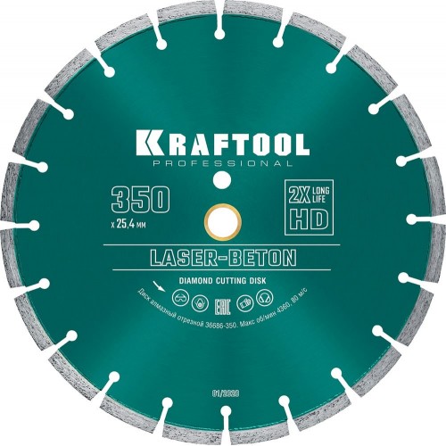 Алмазный диск отрезной KRAFTOOL 36686-350, применяется для резки бетона и камня. Технология LWB (Laser Welded Blades) гарантирует надежную работу инструмента даже при высоких нагрузках и без применения охлаждения. Луч лазера проваривает стык между алмазным сегментом и стальным закаленным корпусом, образуя прочный монолитный шов. Оптимально подобранные компоненты металлической связки с высотой сегмента в 10 мм гарантируют продолжительный рабочий ресурс диска. Корпуса алмазных дисков изготовлены из прочной легированной стали, способной выдержать значительную механическую нагрузку и высокую температуру.