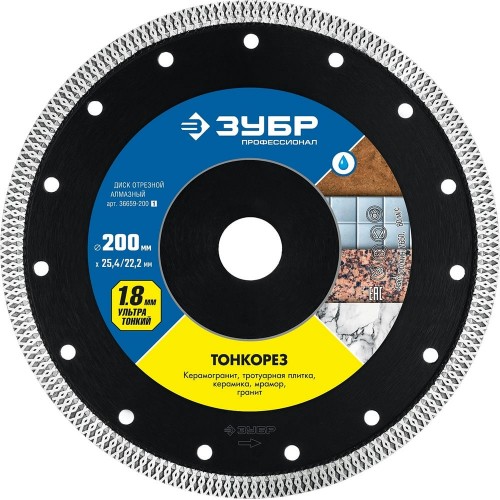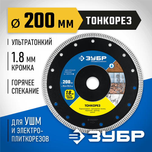 ЗУБР Ø 200х25.4/22.2 мм, алмазный, диск отрезной ТОНКОРЕЗ 36659-200_z01 Профессионал