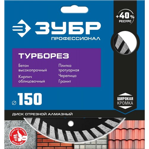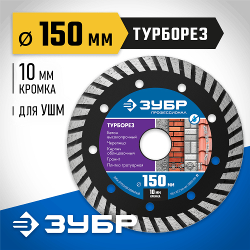 ЗУБР Ø 150х2.2 мм, алмазный, сегментный, диск отрезной для УШМ ТУРБОРЕЗ 36652-150_z02 Профессионал