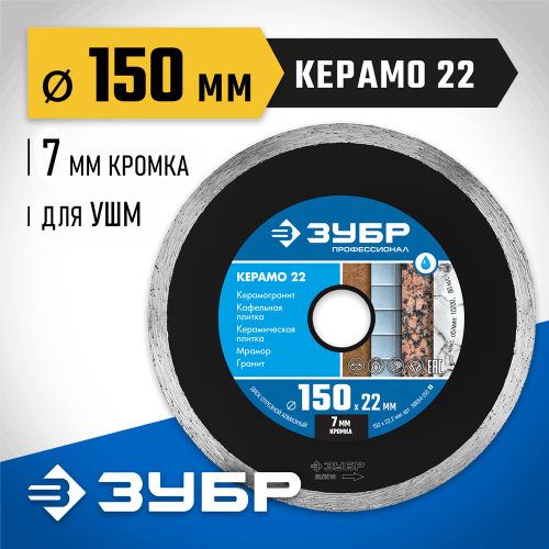 ЗУБР Ø 150Х22.2 мм, алмазный, сплошной, диск отрезной КЕРАМО-22 36654-150_z02 Профессионал