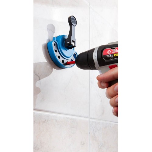- Вакуумная присоска позволяет точно позиционировать кондуктор относительно предполагаемого места сверления.
