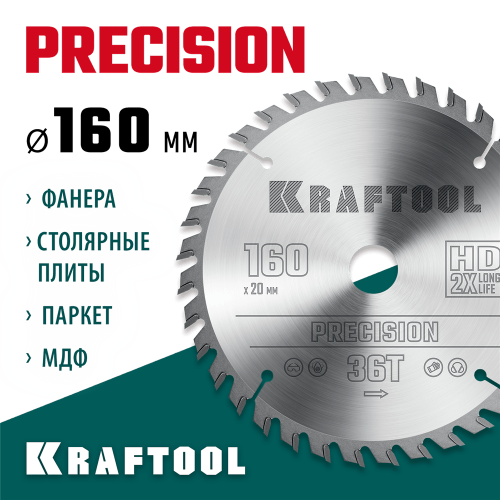 KRAFTOOL PRECISSION 160х20мм 36Т, диск пильный по дереву (36952-160-20)