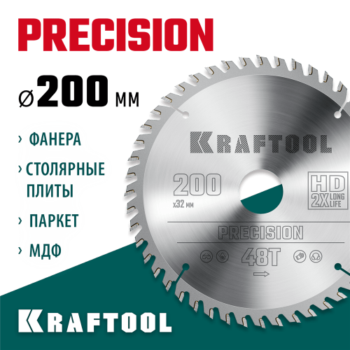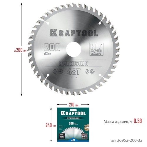 Пильный диск по дереву KRAFTOOL 36952-200-30, используется для быстрых пропилов вдоль и поперек волокон в твердой и мягкой древесине, фанере, ДСП. Предназначен для ручных циркулярных пил, торцовочных и станковых пил. Увеличенный размер режущих элементов значительно увеличивает сопротивляемость нагрузкам. Закаленный корпус повышенной толщины из высоколегированной стали дольше сохраняет жесткость корпуса пильного диска. Компенсационные прорези снижают уровень шума при работе и препятствуют деформации диска от перегрева. Серия ″PRECISION″ отлично подходит для чистого и точного распила всех типов древесины.