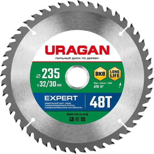 Диск пильный по дереву URAGAN Expert 36802-235-32-48_z01, предназначен для пиления различных строительных материалов: фанера, паркетная доска, столярные и мебельные щиты, МДФ, ламинированные ДСП, комбинированные материалы. Используются на ручных циркулярных пилах для резов вдоль и поперек волокон в твердой и мягкой древесине. Максимально точные, чистые распилы. Особая форма твердосплавного зуба с переменным углом наклона главной задней поверхности разработана для комфортного и производительного пиления различных строительных материалов. Специальные компенсационные прорези на диске защищают его от деформации при перегреве. Качество пильного диска обеспечивается многоступенчатым контролем производственного процесса и использованием качественных материалов.