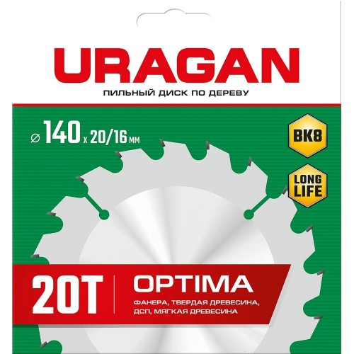 URAGAN Optima 140х20/16мм 20Т, диск пильный по дереву