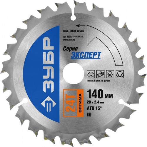Пильный диск по дереву ЗУБР 36903-140-20-24, предназначен для быстрого распила всех типов древесины. Подходит для продольного, поперечного и углового распила твердых и мягких пород дерева. Клеевых плит, МДФ (в том числе облицованных натуральным шпоном, меланиновой пленкой, бумагой, пластиком и др.), фанеры и облицованной фанеры на циркулярных, торцовочных и станковых пилах. Автоматизированная высококачественная пайка для надежного крепления зубьев. Автоматическая трехсторонняя шлифовка зубьев для максимально точной геометрии режущих элементов и чистого реза. Компьютерная балансировка диска для предотвращения биений при работе. Компенсационные прорези исключают внутреннее напряжение и деформацию диска, возникающую при его перегреве во время эксплуатации.