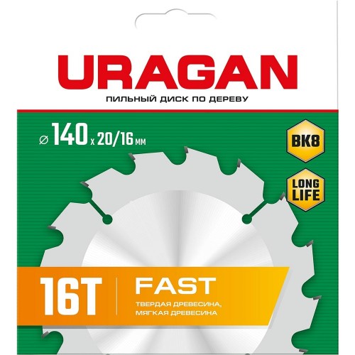 URAGAN Fast 140x20/16мм 16Т, диск пильный по дереву