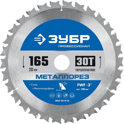 Диск пильный по металлу ЗУБР 36932-165-20-30, применяется для продольного, поперечного и углового распила металла, сталей и металлопрофиля на циркулярных, торцовочных и станковых пилах. Чистая кромка кромка реза без наплываов. Автоматизированная высококачественная пайка для надежного крепления зубьев. Закаленный корпус из высоколегированной стали препятствует возникновению биений при работе. Компьютерная балансировка диска для предотвращения биений при работе. Автоматическая трехсторонняя шлифовка зубьев для максимально точной геометрии режущих элементов и чистого реза. Компенсационные прорези исключают внутреннее напряжение и деформацию диска, возникающую при его перегреве во время эксплуатации.