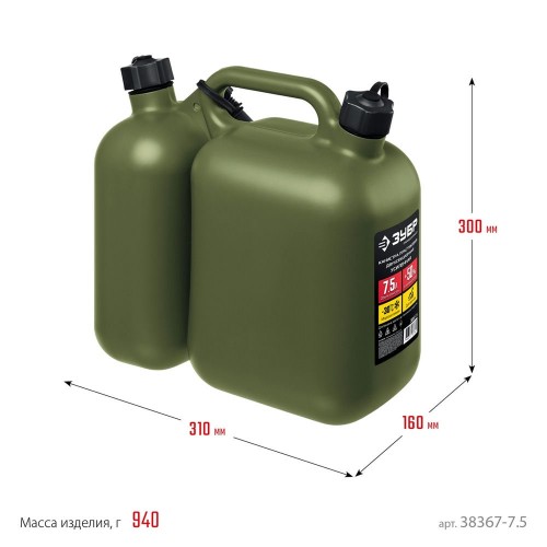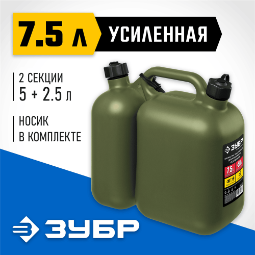 ЗУБР 5 + 2.5 л, пластиковая усиленная двухсекционная канистра, Профессионал (38367-7.5)