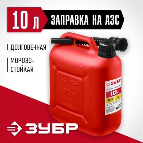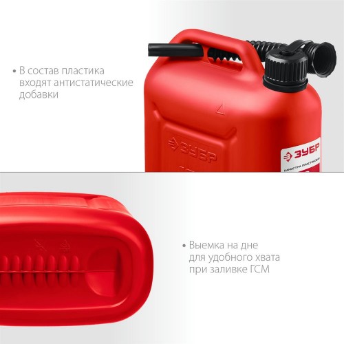 Пластиковая канистра ЗУБР 38366-10 предназначена для хранения и транспортировки топлива и технических жидкостей. Устойчива к механическим воздействиям даже при отрицательных температурах (до -30°C). В состав пластика входят антистатические добавки. Крышка с маслобензостойким уплотнителем. Гибкий носик для заливки ГСМ. Защита крышки от случайного откручивания. Выемка на дне для удобного хвата при заливке ГСМ. Допускается использование на АЗС.