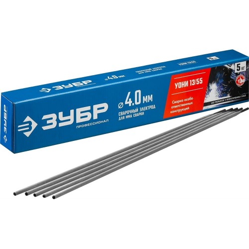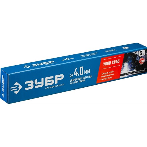 ЗУБР Ø 4.0 мм, 5 кг, для ММА сварки, с основным покрытием, электрод сварочный УОНИ 13/55 40025-4.0 Профессионал