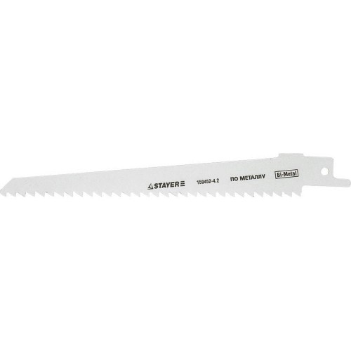 Сабельное полотно STAYER 159452-4. 2, предназначено для прямолинейного распила тонколистового металла, алюминия, древесины с гвоздями, пластмассы и оргстекла. Применяется на сабельной электрической ножовке при резке древесины с гвоздями до 100 мм, листового металла до 10 мм, алюминиевого, пластикового профиля до 100 мм.