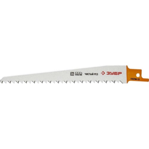 Сабельное полотно ЗУБР 155704-13, предназначено для прямых и криволинейных пропилов в твёрдой и мягкой древесине, фанере, пластике и ДСП. Применяется на сабельной электрической ножовке для фигурной резки древесины и пластика. Полотна изготовлены из специальной высоколегированной углеродистой стали обеспечивающей необходимые показатели гибкости и прочности при работе с древесиной. Небольшая рабочая длина полотна обеспечивает возможность обработки материала в труднодоступных местах.